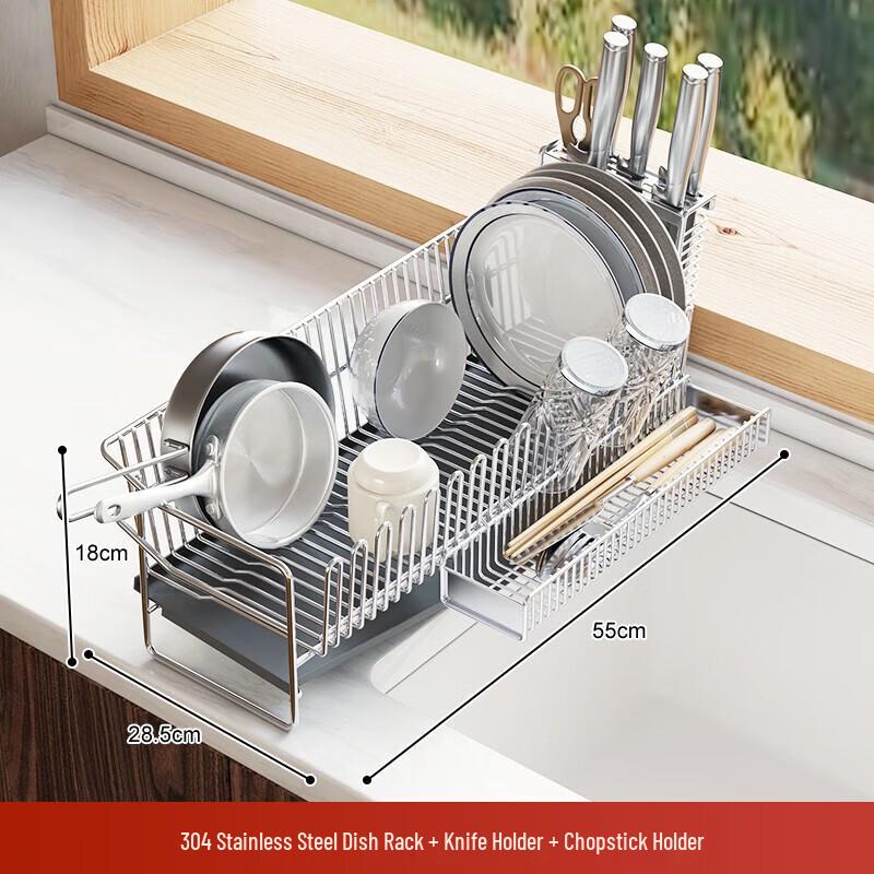 МодельНастольная сушилка для посуды из нержавеющей стали 304 с подставкой для ножей и палочек для еды