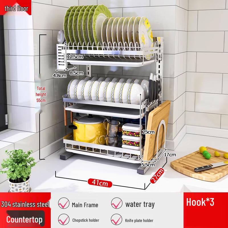 Beifu 304 Stainless Steel 3-Tier Dish Drying Rack