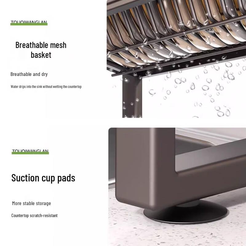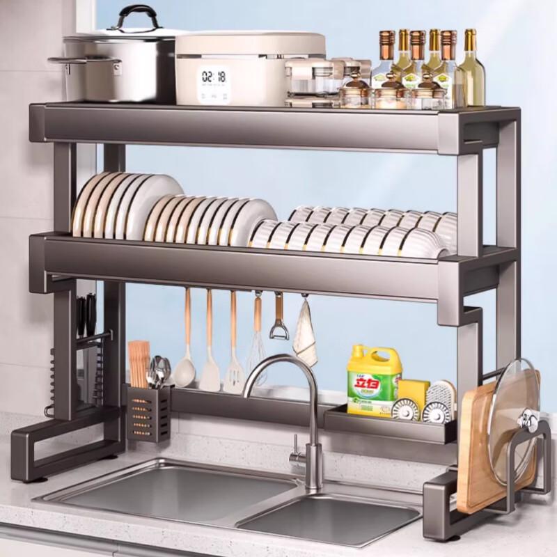 Gunmetal Grey Stainless Steel Double-Layer Dish Rack