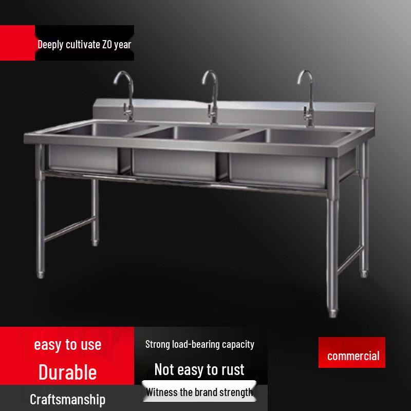 Floor-Standing Stainless Steel Triple Bowl Kitchen Sink — купить товар онлайн с бесплатной доставкой по всему миру!