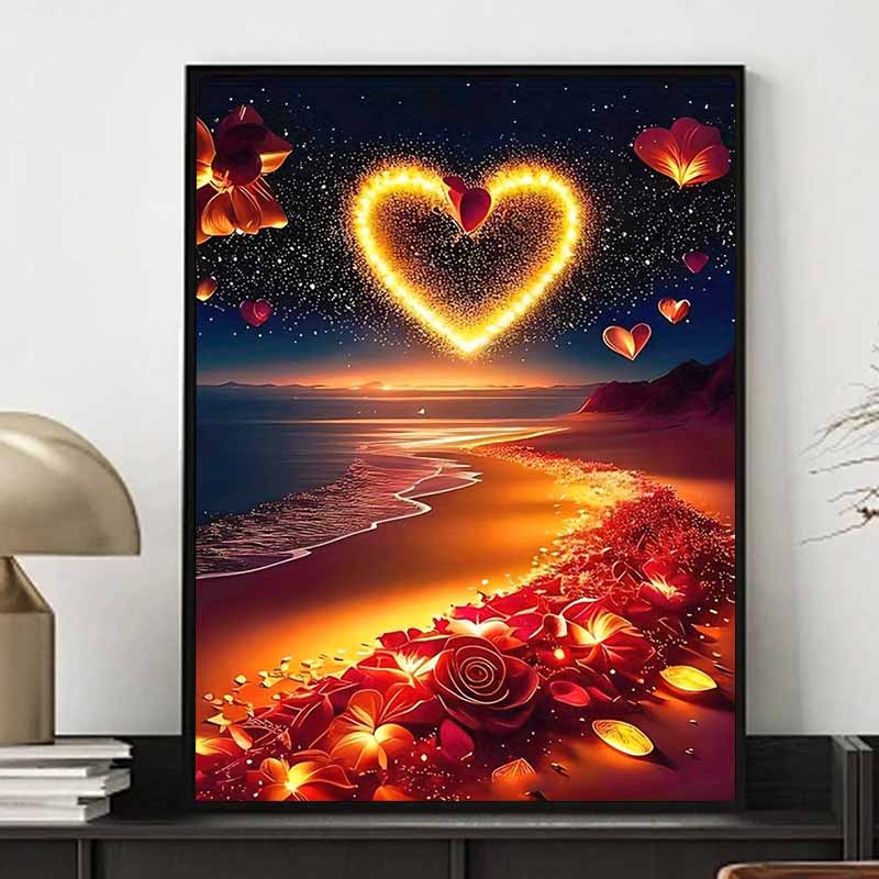 New Arrival 5D DIY Full Circle Diamond Painting "Love Beach" Embroidery Cross Stitch Home Decor Gift
