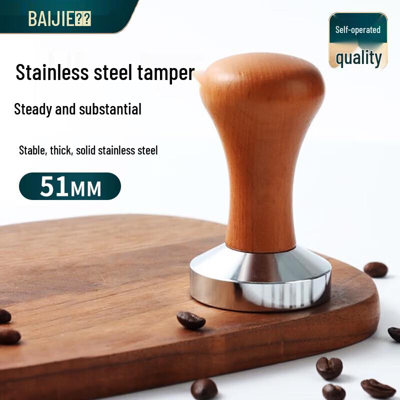 BaiJie 51mm Stainless Steel Coffee Tamper with Wood Handle