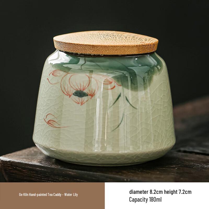 Hand-Painted Ceramic Tea Caddy with Bamboo Lid