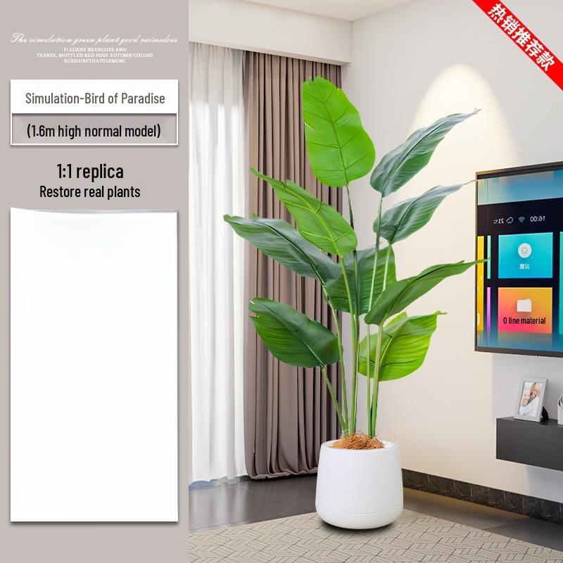 Large Artificial Bird of Paradise Plant with White Pot