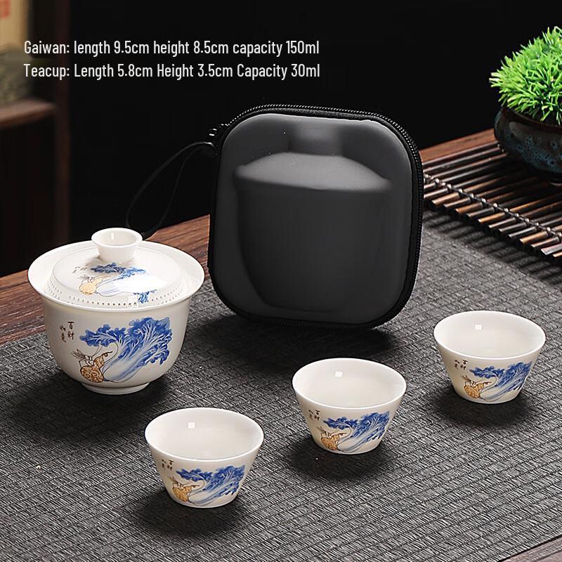 Shangqi Portable Mutton-Fat Jade Ceramic Travel Tea Set