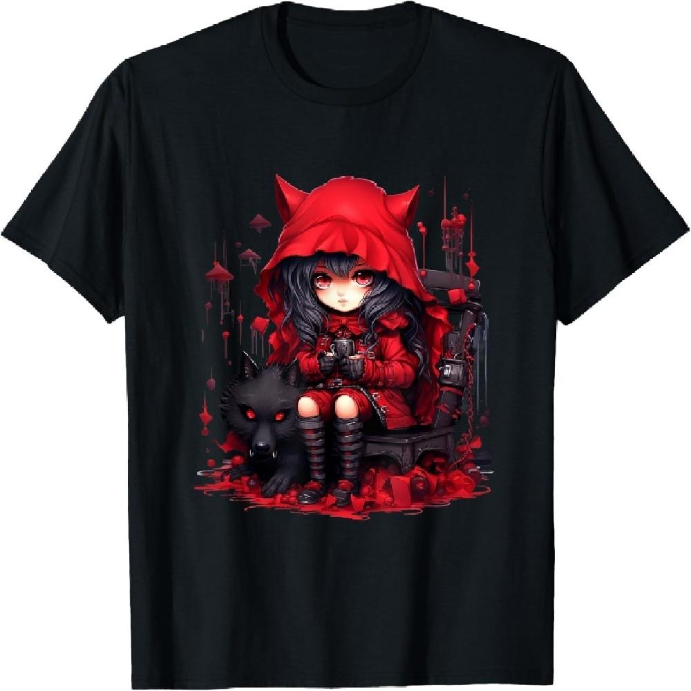 Чиби Красная Шапочка и Серый Волк Аниме Каваий Стиль Футболка