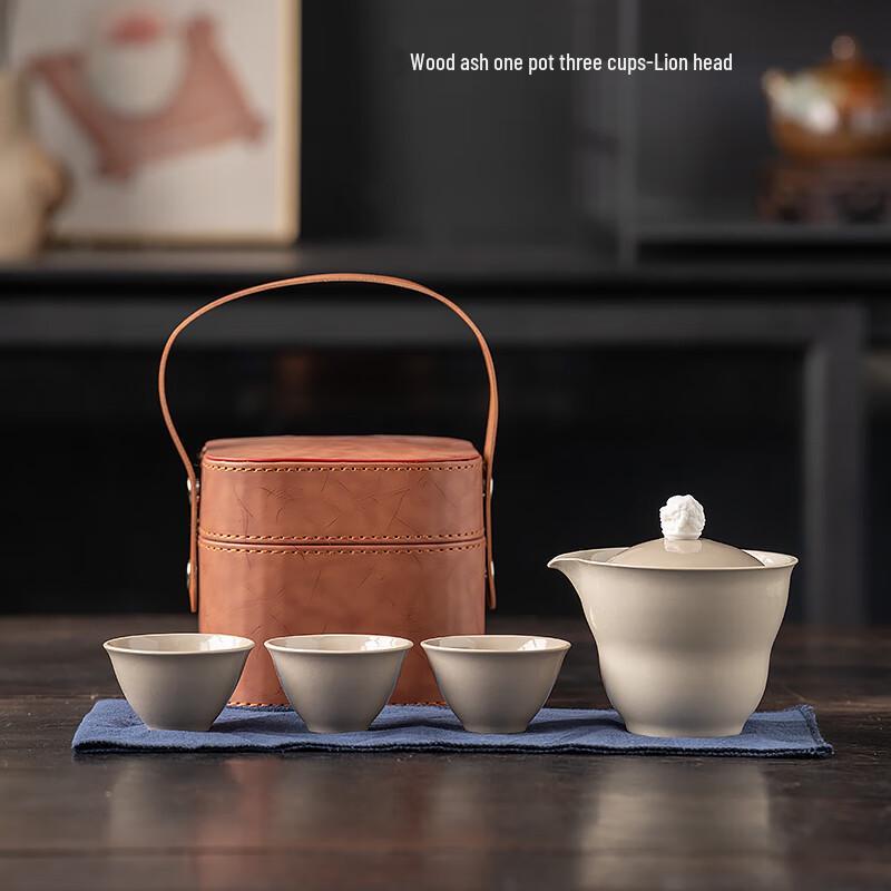 Chinese Style Ash Glazed Portable Travel Tea Set