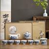 Dehua Enamel Blue and White Porcelain 10-Piece Gaiwan Tea Set