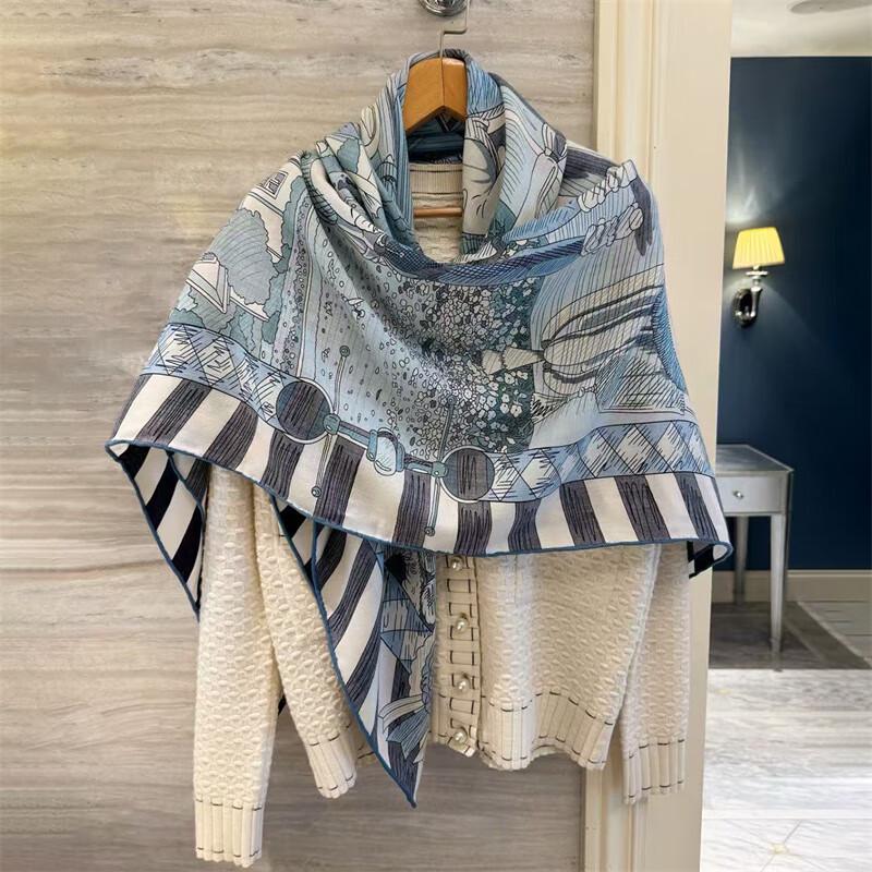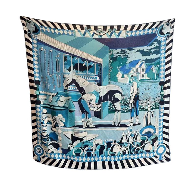 NINA SOLOR Pony Post Station Double-Sided Silk Wool Square Scarf Shawl