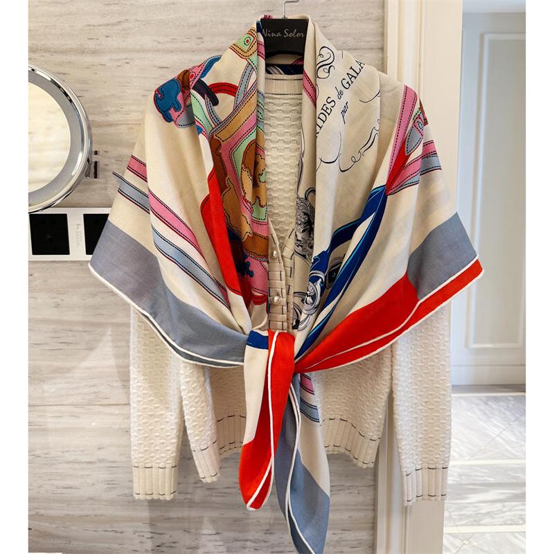 NINA SOLOR Color-Blocked Saddle Silk Wool Scarf