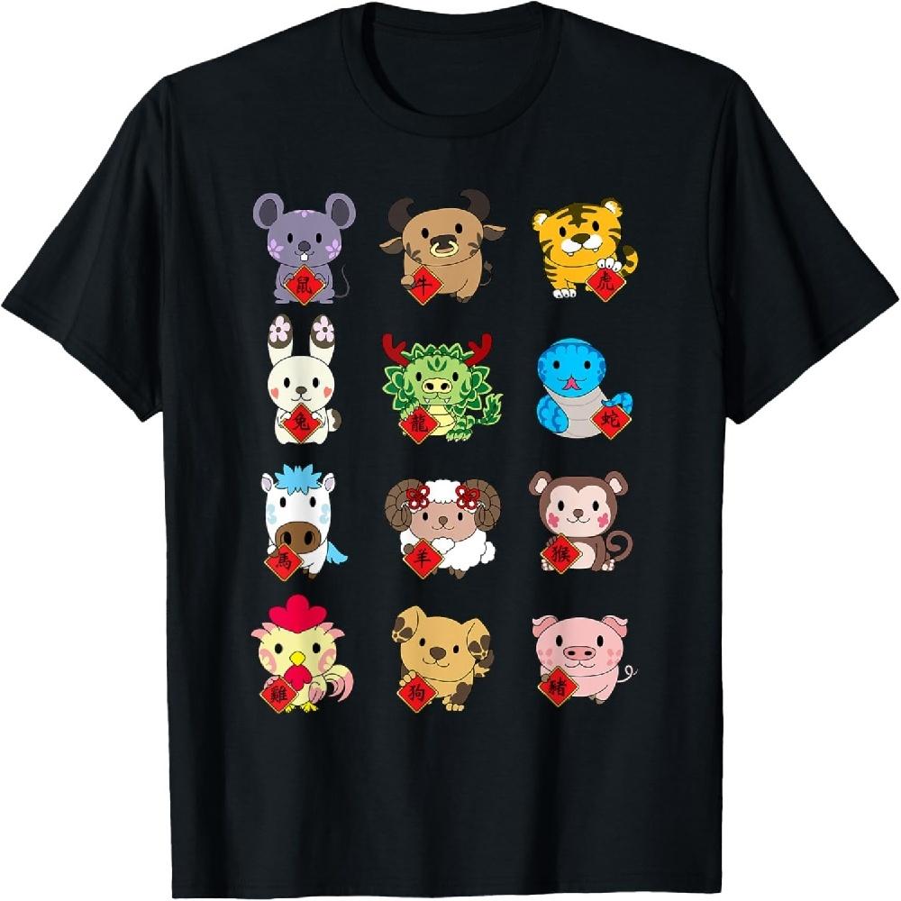 Милая футболка со знаками китайского зодиака на Новый год по лунному календарю