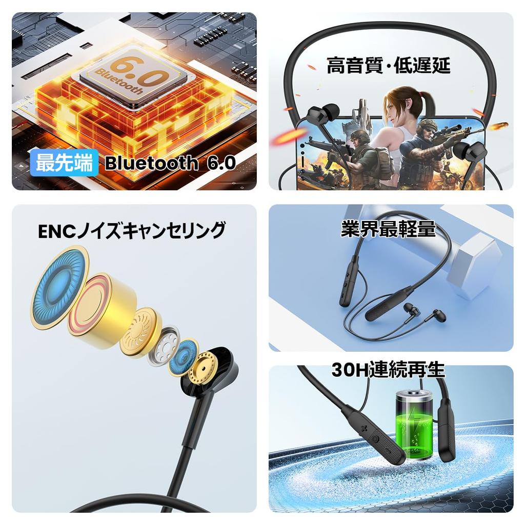 【Bluetooth 6.0】Оснащенные передовой технологией Bluetooth 6.0, эти наушники с шейным ободом обеспечивают более быстрое и стабильное соединение, чем предыдущий Bluetooth 5.3, с улучшенной скоростью и дальностью действия. Минимизация задержки для более захватывающего игрового опыта.