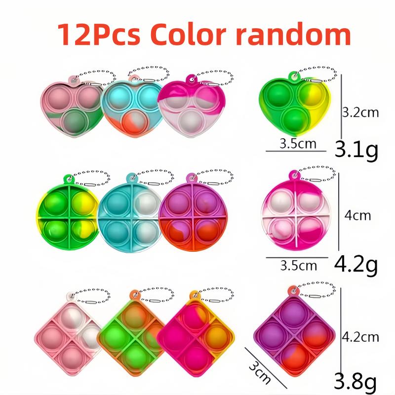 12 шт. Поп Брелоки Игрушки-непоседы Нажми Снятие стресса Сенсорные игрушки для детей Призы для класса Сувениры для вечеринки по случаю дня рождения Оптовая упаковка