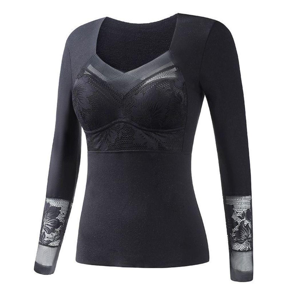 Осенняя одежда Термобелье Сетчатое V-образный вырез Тепло Длинный теплый топ Женская термоодежда Майка