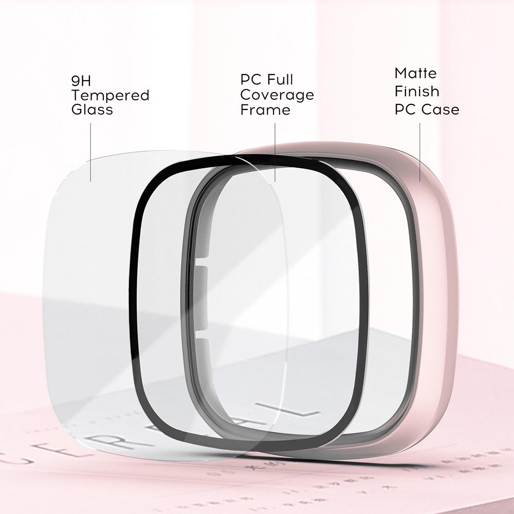 Стекло+Чехол Полный для Fitbit Versa 3 Защитный Чехол Защита Экрана Жесткий ПК Матовый Бампер Оболочка для Fitbit Sense Всесторонняя Защита