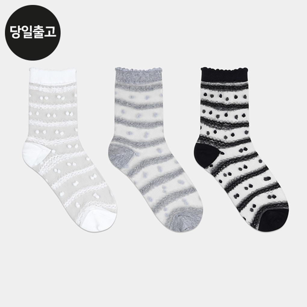 PG Women's/Student Lily See-Through Mid-Calf Socks (3-Pair) Set Daily Student Mesh Socks