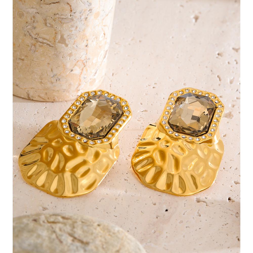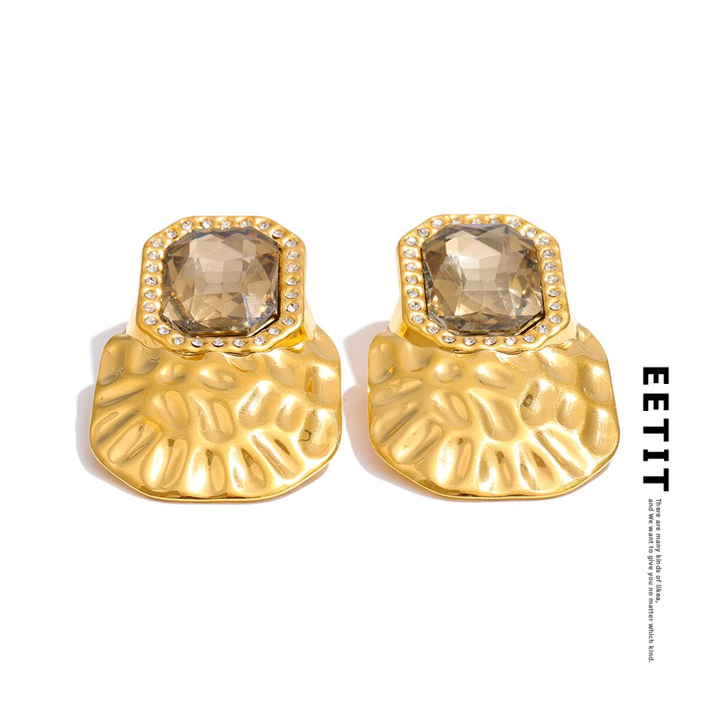 Eetit Серые хрустальные квадратные серьги-пусеты, крупные, с 18-каратным золотым покрытием, из нержавеющей стали, модные, эффектные, ювелирные изделия для ношения, водостойкие