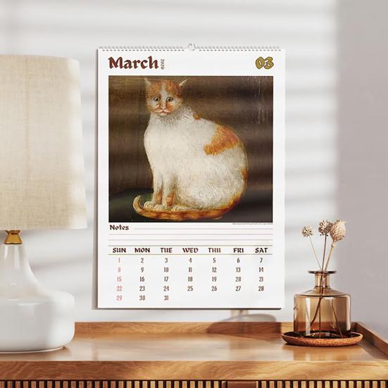 Уникальная тематическая концепция: Этот календарь на 2026 год, посвященный «Странным кошкам в картинах эпохи Возрождения», остроумно сочетает классическое искусство с современной любознательностью.. Он выделяет загадочные и выразительные изображения кошек из исторических произведений искусства, предлагая свежий взгляд, который привлекает как любителей искусства, так и любителей кошек.