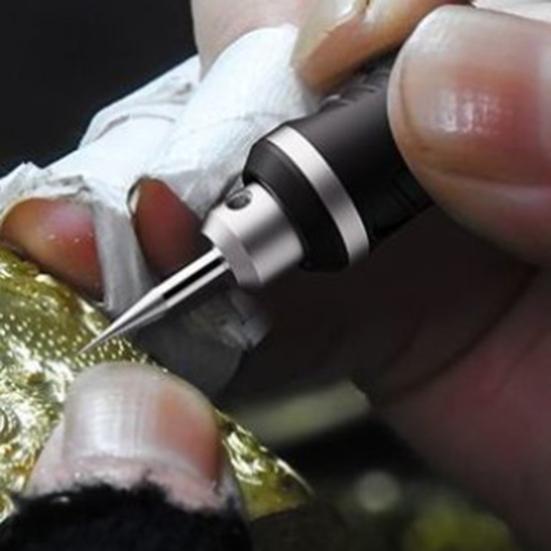 Эргономичная ручка с резиновым покрытием для комфорта и точности: Разработанный для снижения усталости рук при длительном использовании, легкий и хорошо сбалансированный корпус обеспечивает надежный захват.. Это обеспечивает точный контроль при выполнении детальных задач, таких как матование кривых или тонкая гравировка.