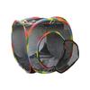 Featuring vibrant rainbow-colored borders, the tunnel effectively captures the attention of cats, puppies, and small pets, encouraging playful exploration. With a 26cm diameter entrance, it comfortably accommodates small to medium-sized pets. Made from durable, breathable high-strength mesh material, this lightweight tunnel is perfect for indoor, balcony, or outdoor use.