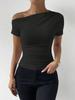 Новая летняя приталенная футболка с оборками и асимметричным коротким рукавом — купить товар онлайн с бесплатной доставкой по всему миру!