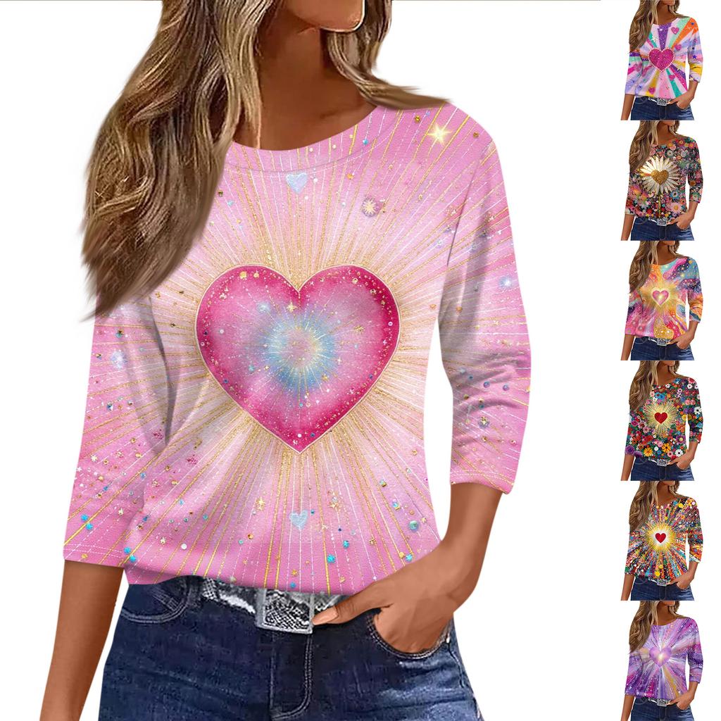 Женский модный повседневный топ с рукавом три четверти и круглым вырезом с принтом