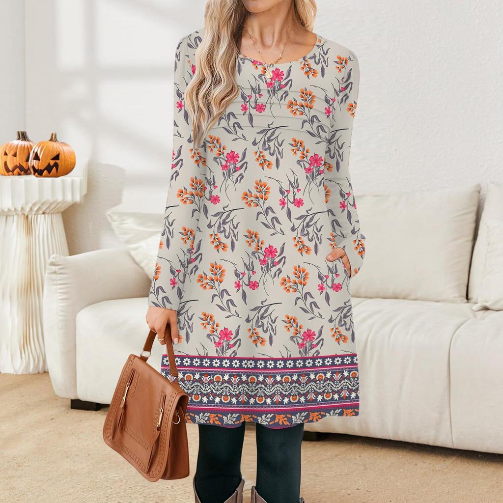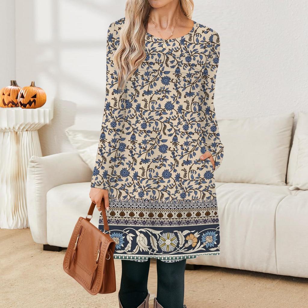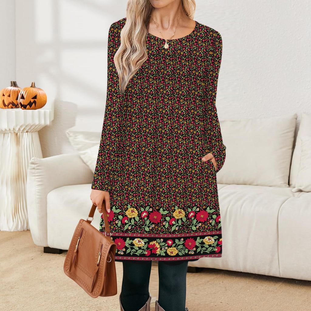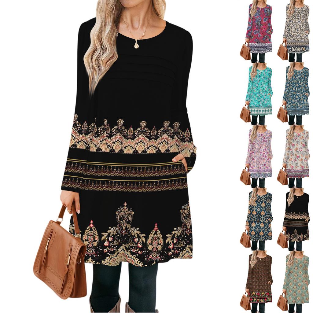 Женское платье с длинным рукавом, осеннее повседневное, футболка, свободного кроя, с плиссировкой спереди, платья с карманами