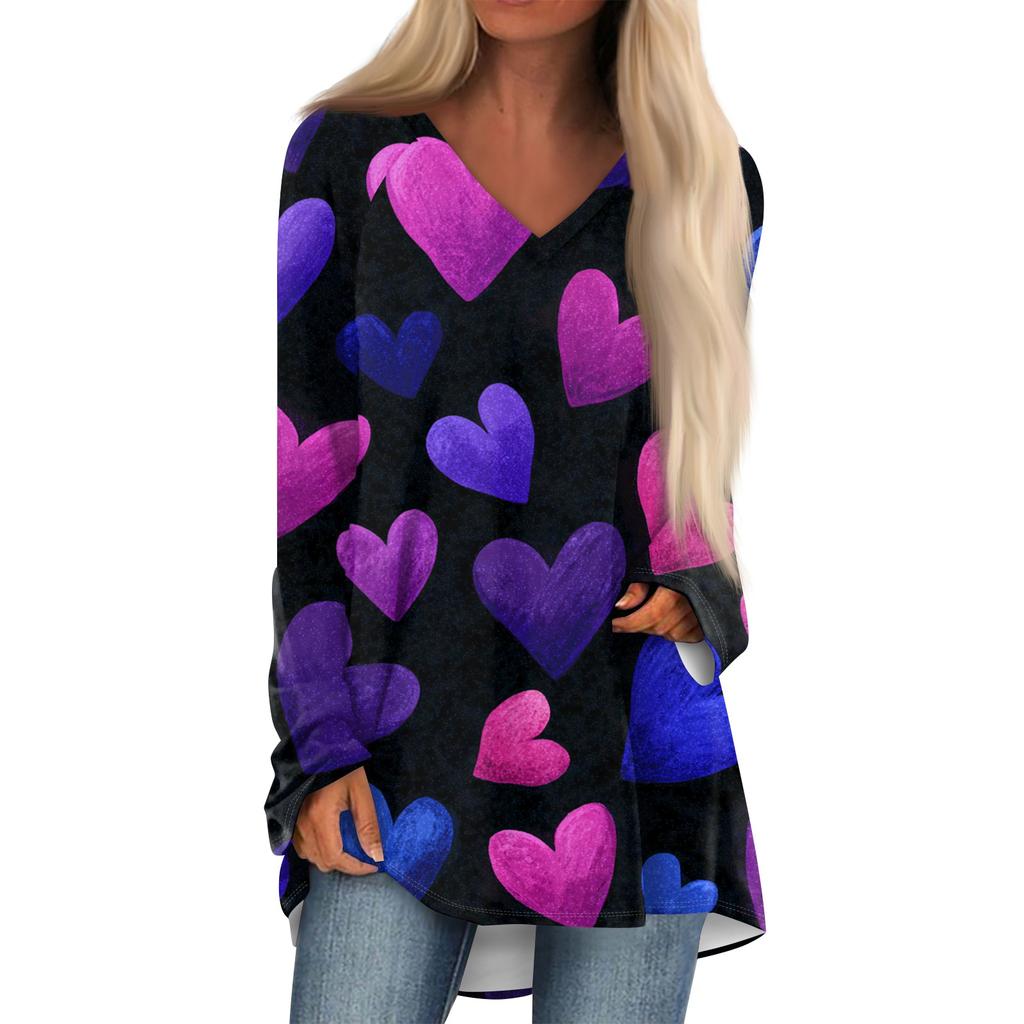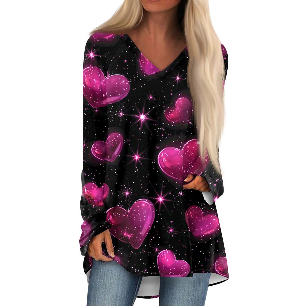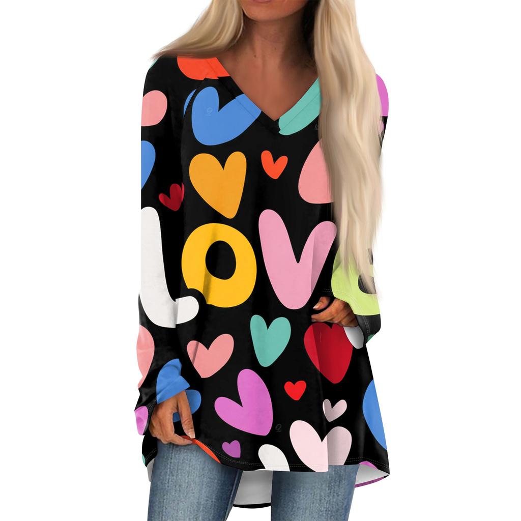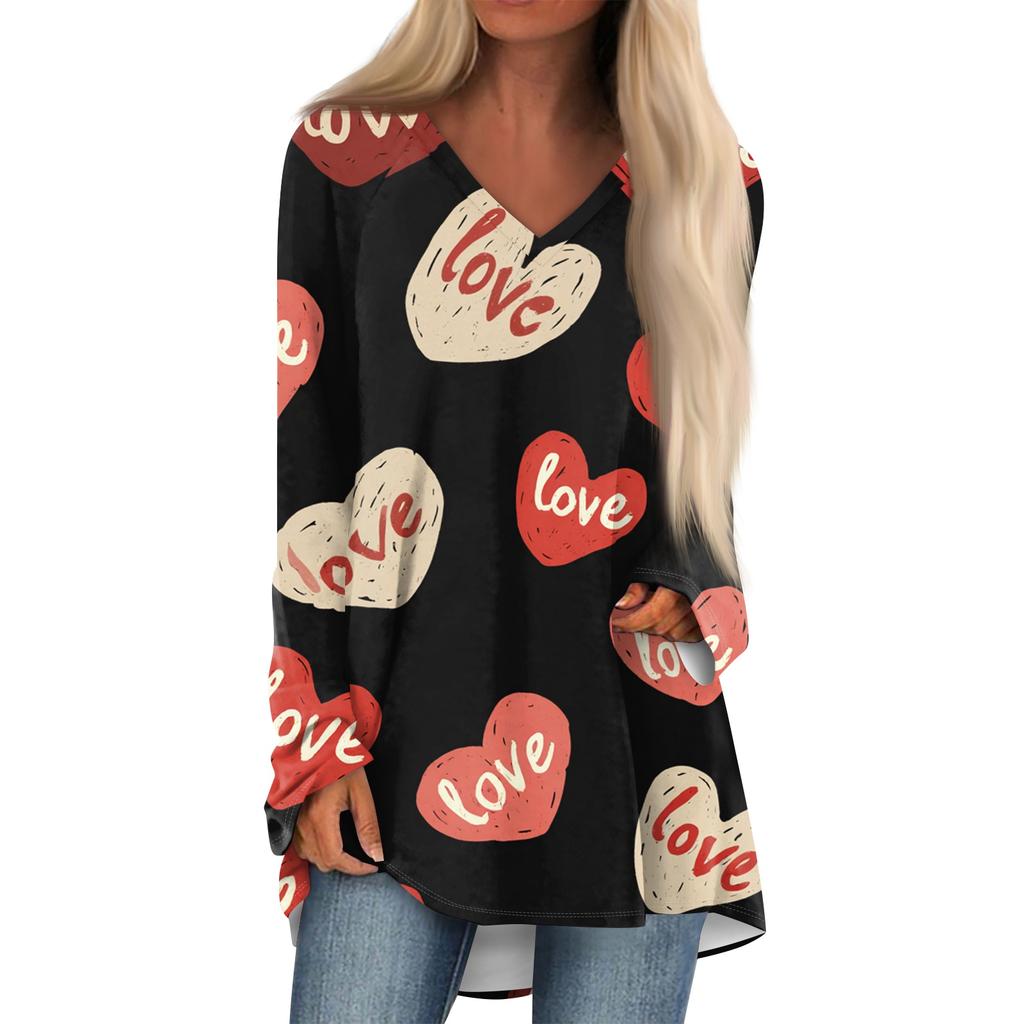 Женский модный повседневный топ с длинными рукавами, принтом ко Дню святого Валентина и V-образным вырезом средней длины