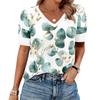 Женская Мода Повседневная V-образный вырез Короткий рукав Принт Рубашка Женские Топы