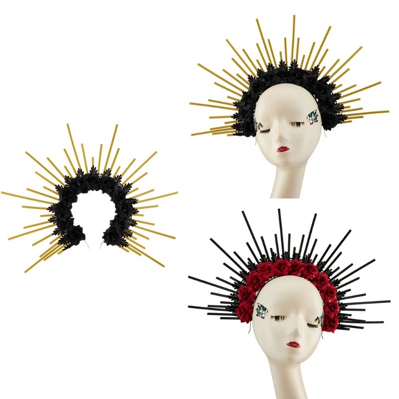 Роза Цветочная Корона Тиары для Волос Шипованные Ободки Невеста Цветочная Корона Хэллоуин