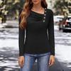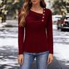 Женская модная повседневная футболка с асимметричным воротником на пуговицах, топ с длинным рукавом из молочного шелка — купить товар онлайн с бесплатной доставкой по всему миру!
