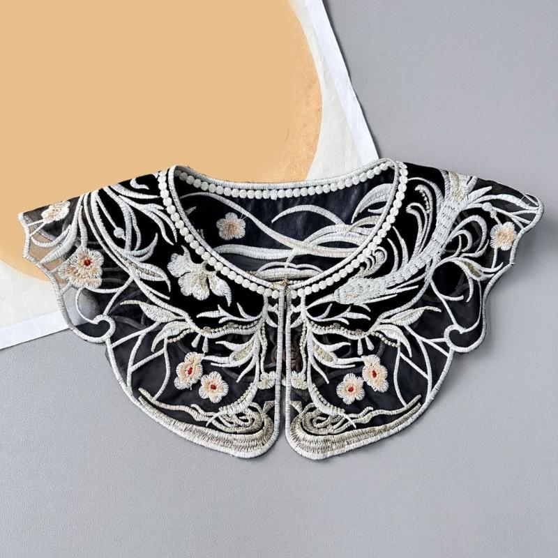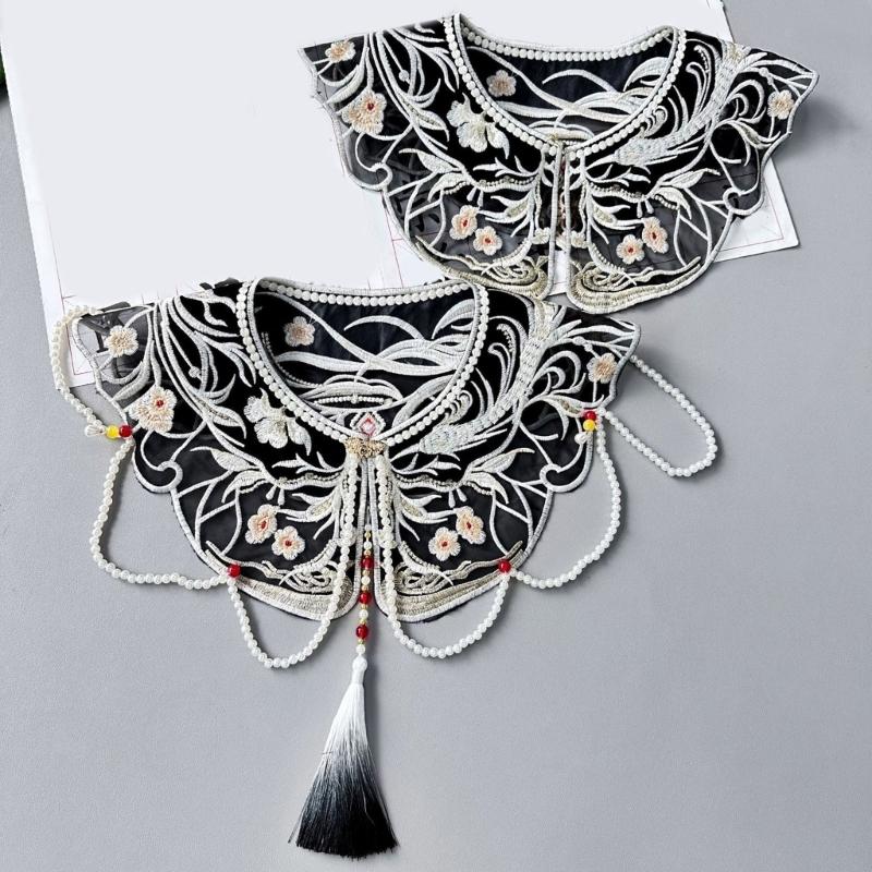 Женский искусственный воротник с кисточками из жемчужной цепочки, винтажная вышивка, китайский черный искусственный воротник-шаль-накидка с бусинами и кисточками