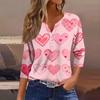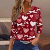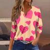 Женская модная рубашка на пуговицах с V-образным вырезом, рукавом три четверти, с принтом ко Дню святого Валентина