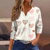 Женская модная рубашка на пуговицах с V-образным вырезом, рукавом три четверти, с принтом ко Дню святого Валентина