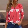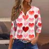 Женская модная рубашка на пуговицах с V-образным вырезом, рукавом три четверти, с принтом ко Дню святого Валентина