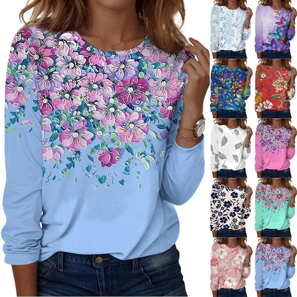 Рубашки с длинным рукавом для женщин, милые футболки с графическим принтом, блузки, повседневные базовые топы больших размеров, пуловеры