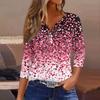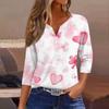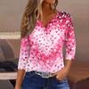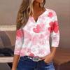 Жен. Футболка Футболка С принтом Пуговицы Рукав 3/4Ежедневно Выходные Мода Классический Топ с v-образным вырезом Обычный