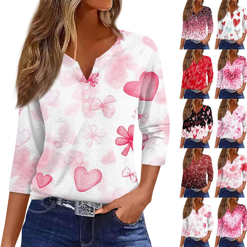 Жен. Футболка Футболка С принтом Пуговицы Рукав 3/4Ежедневно Выходные Мода Классический Топ с v-образным вырезом Обычный — купить товар онлайн с бесплатной доставкой по всему миру!