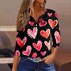Жен. Футболка Футболка С принтом Пуговицы Рукав 3/4Ежедневно Выходные Мода Классический Топ с v-образным вырезом Обычный