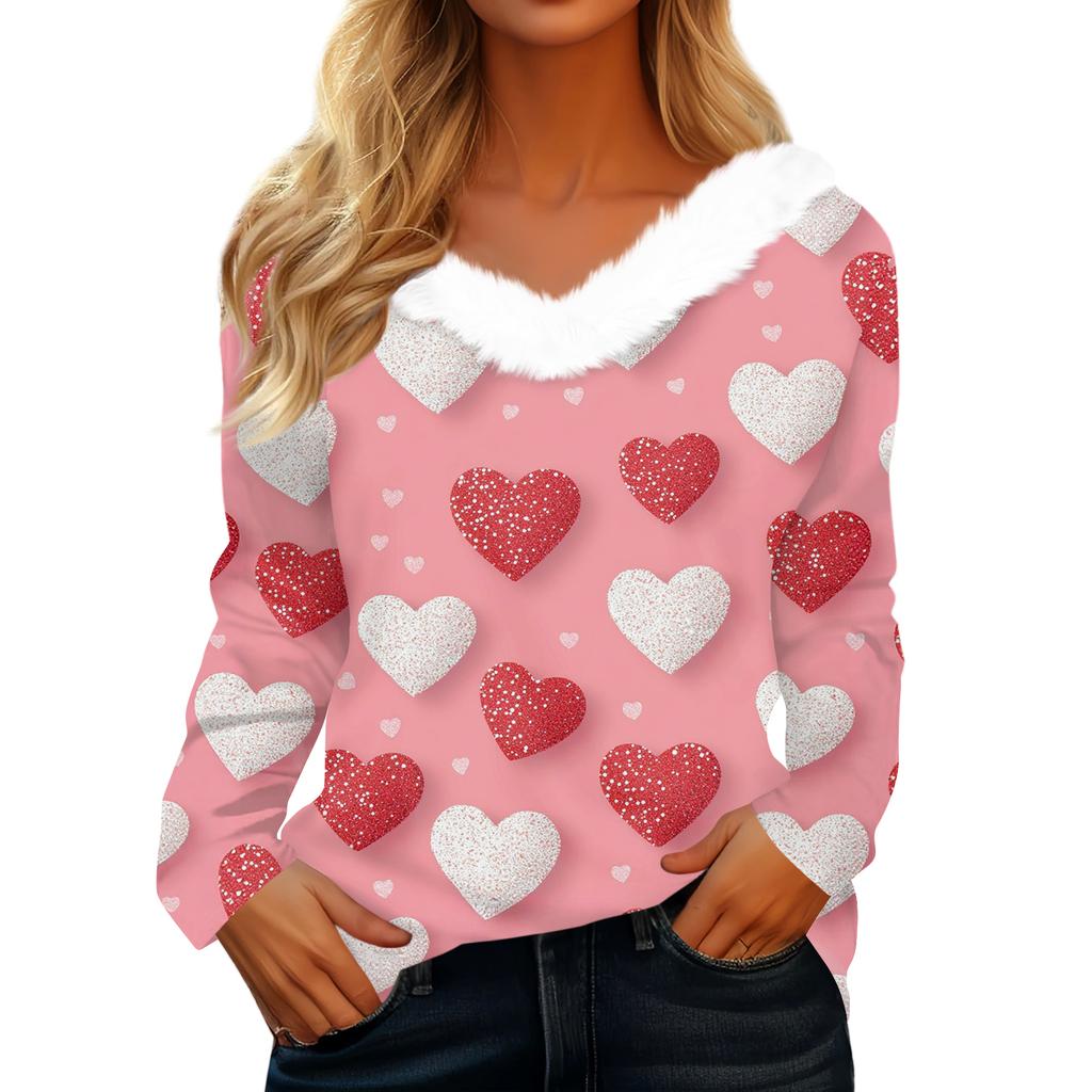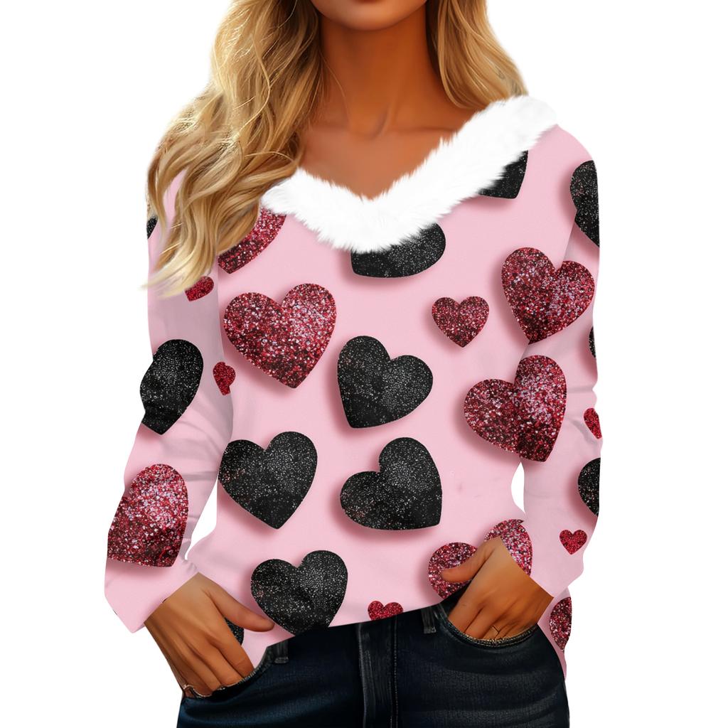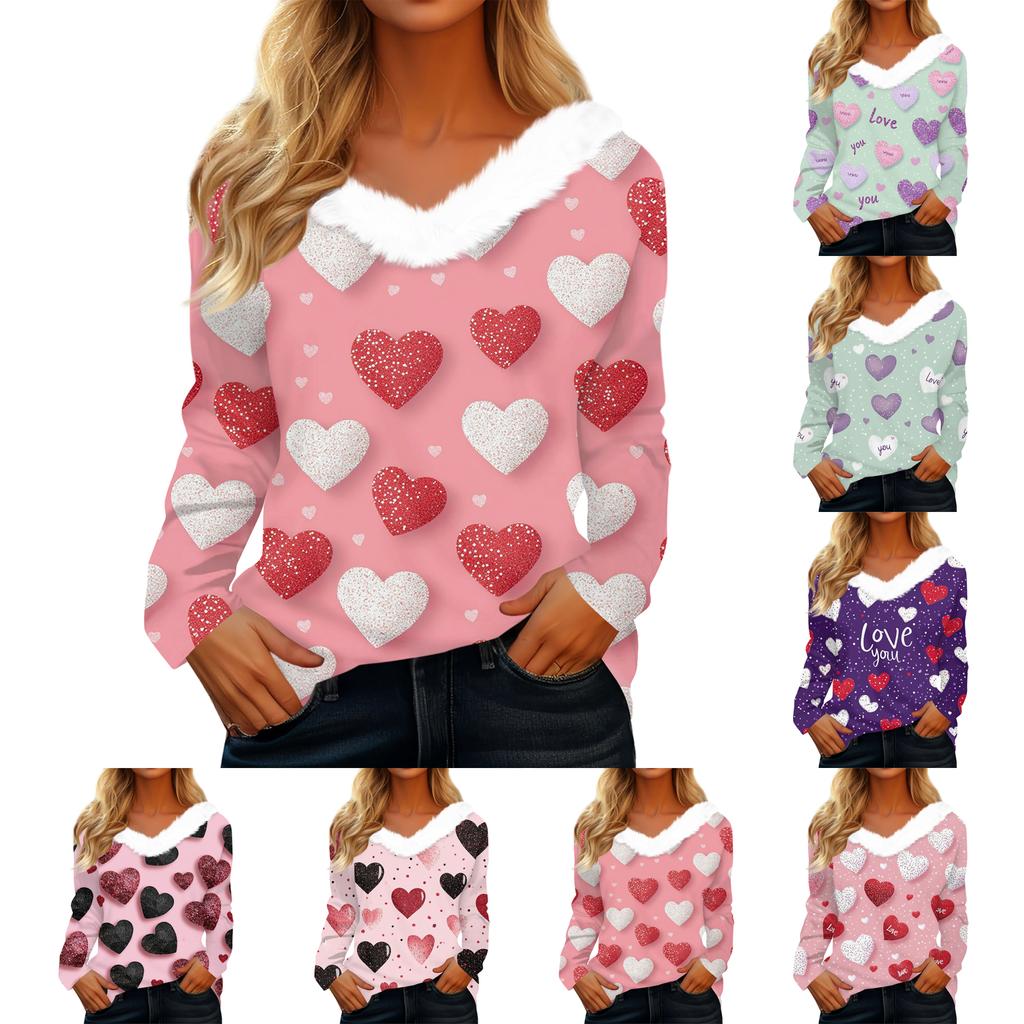 Женская футболка с длинным рукавом с принтом на День святого Валентина, V-образным вырезом, повседневная, свободного кроя