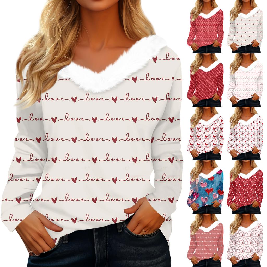 Женская футболка с длинным рукавом с принтом на День святого Валентина, V-образным вырезом, повседневная, свободного кроя — купить товар онлайн с бесплатной доставкой по всему миру!