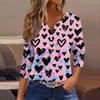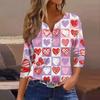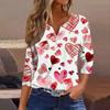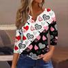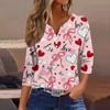 Женская модная рубашка на пуговицах с V-образным вырезом, рукавом три четверти, с принтом ко Дню святого Валентина
