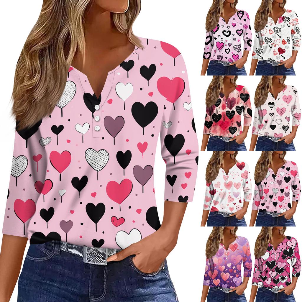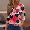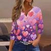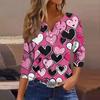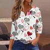 Женская модная рубашка на пуговицах с V-образным вырезом, рукавом три четверти, с принтом ко Дню святого Валентина
