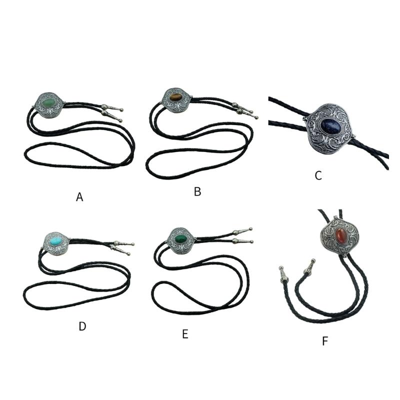 Braided Shoestring Gemstones Bolo Tie Charm Cowboy Necktie Necklace