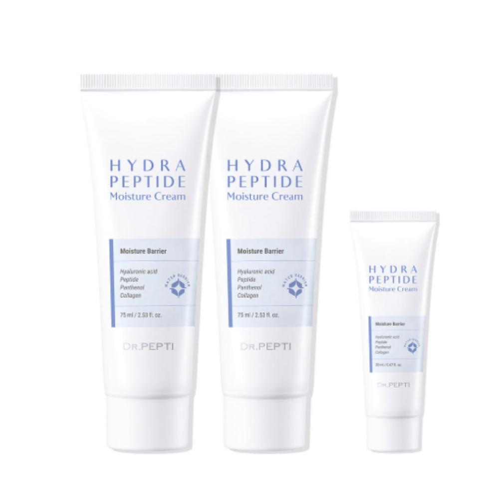 Deeply hydrating peptide cream set for soft, elastic skin. Dr. Pepti Hydra Peptide Moisture Cream 75ml x2 with bonus 20ml.