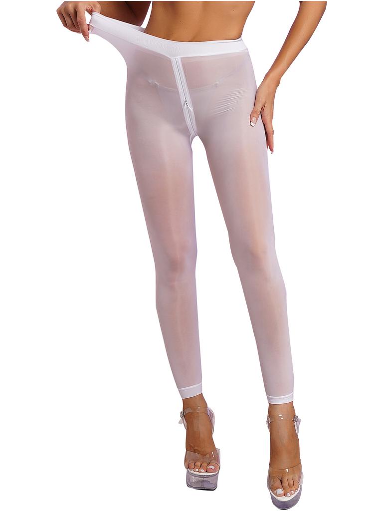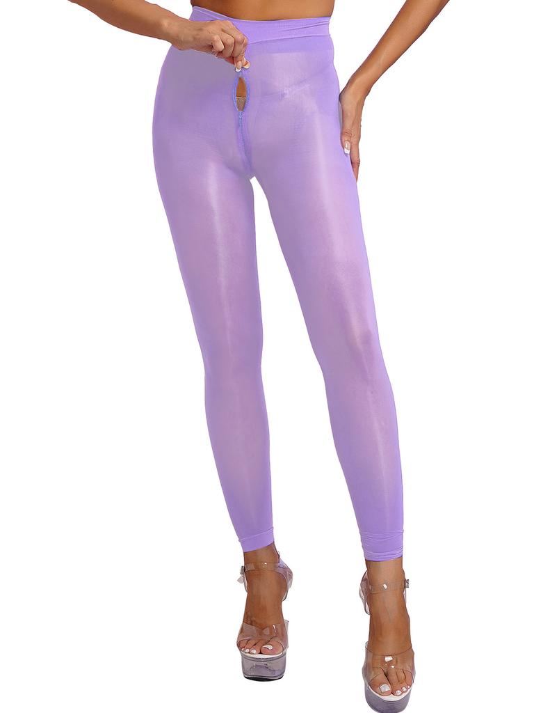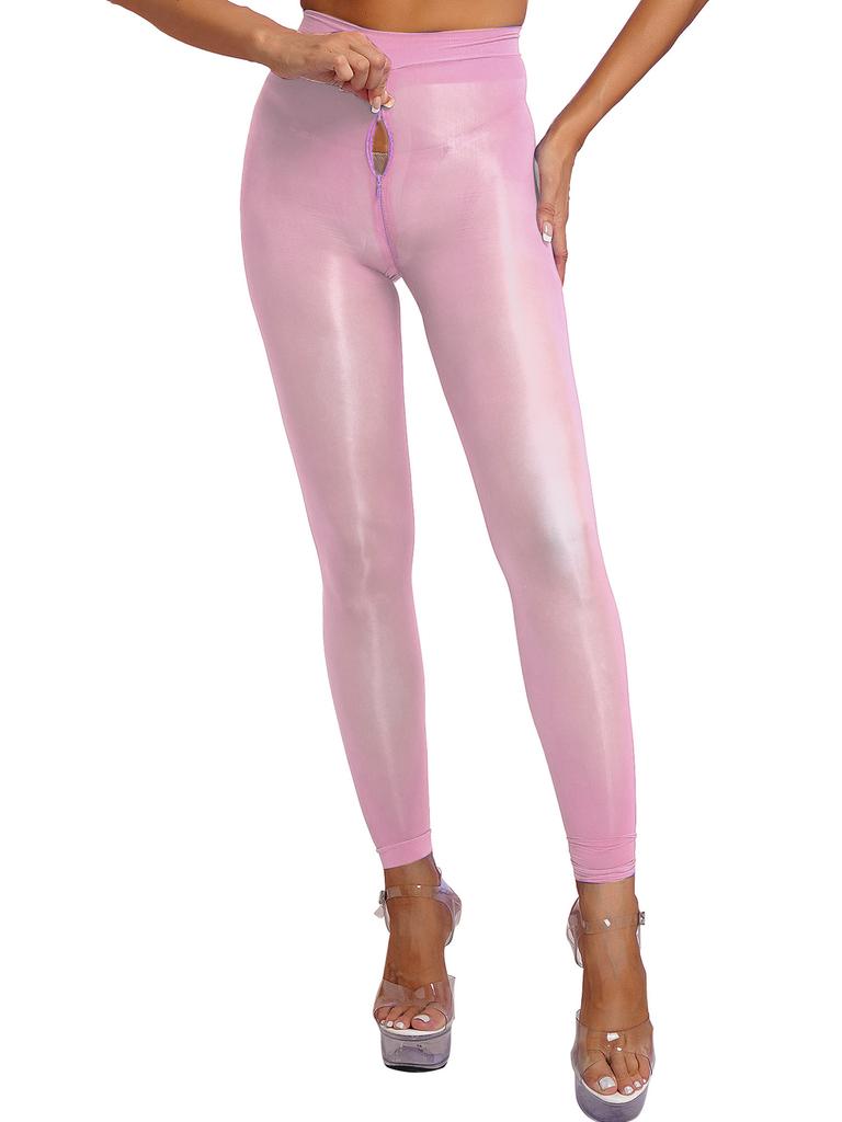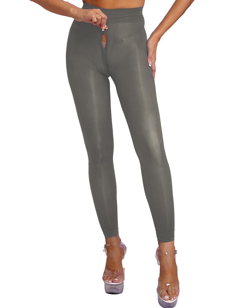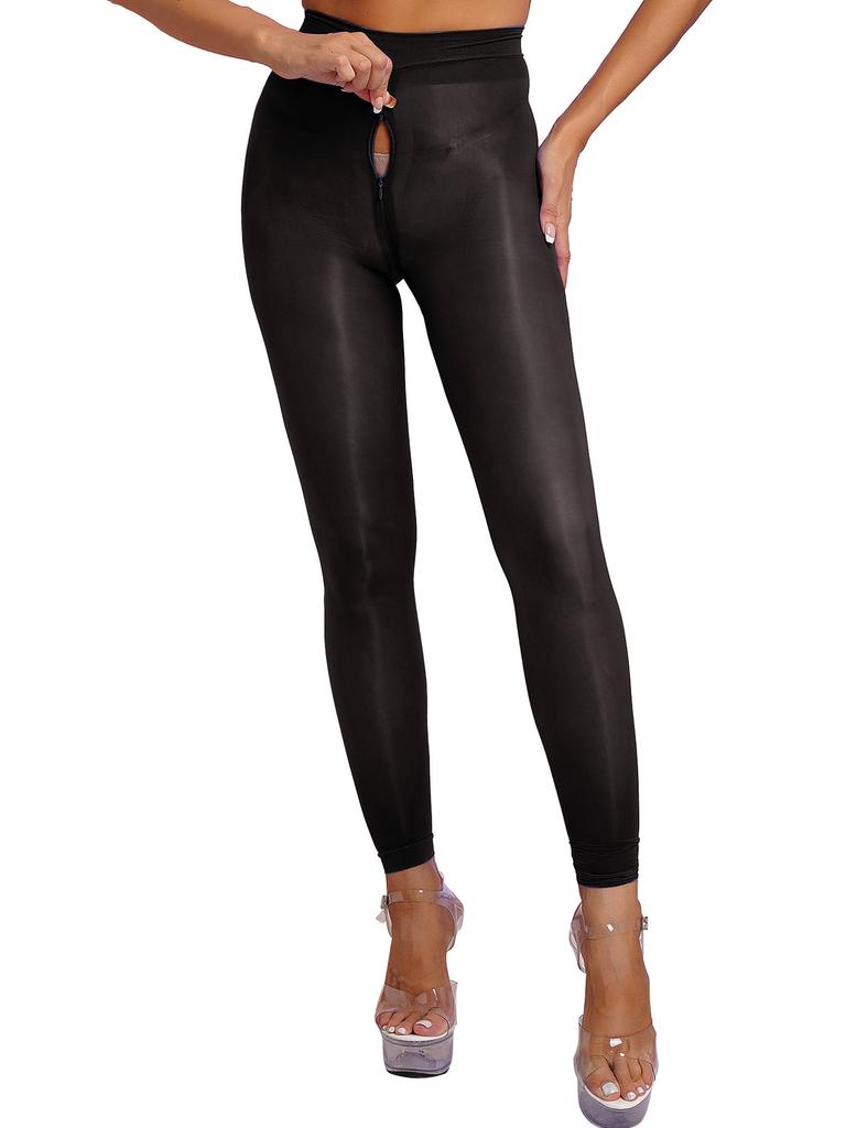 Женские однотонные узкие леггинсы, глянцевые прозрачные колготки, эластичные колготки на молнии в промежности, брюки, чулки, прозрачные чулки