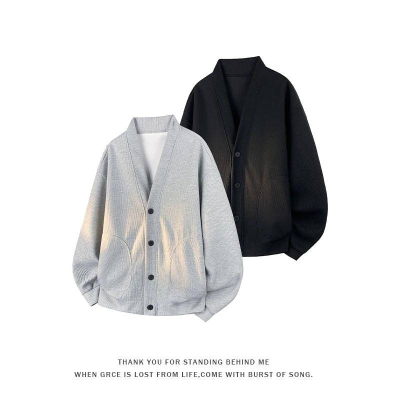 Мужские свитшоты однотонные, весна-осень 2026, мужской вязаный кардиган, мужские повседневные толстовки свободного кроя, мужские куртки с V-образным вырезом, верхняя одежда