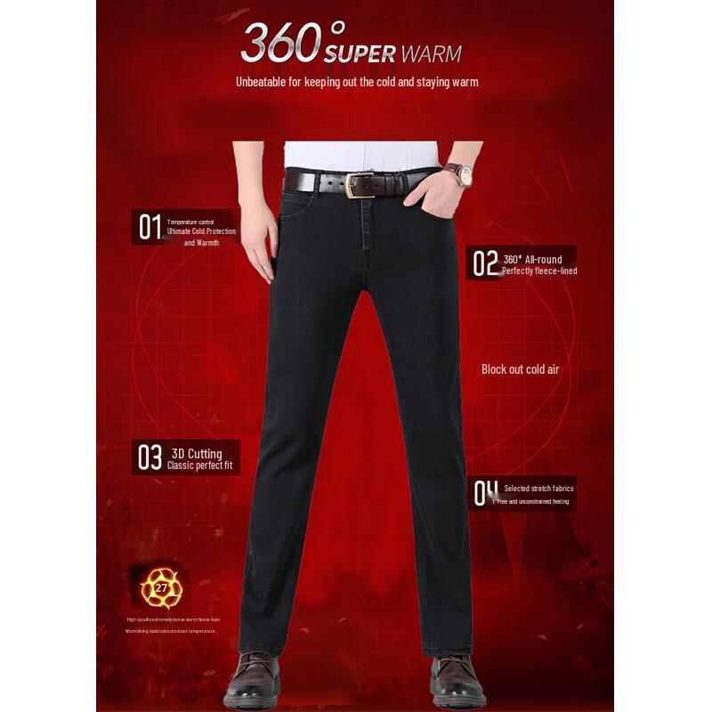 Romon Men's Thermal Straight-Leg Denim Jeans WL9819R