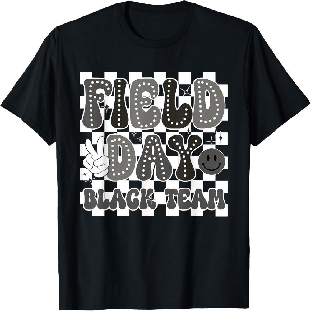 Школьный День Черной Команды Крутое Лицо Улыбка Клетчатая Студенческая Футболка