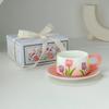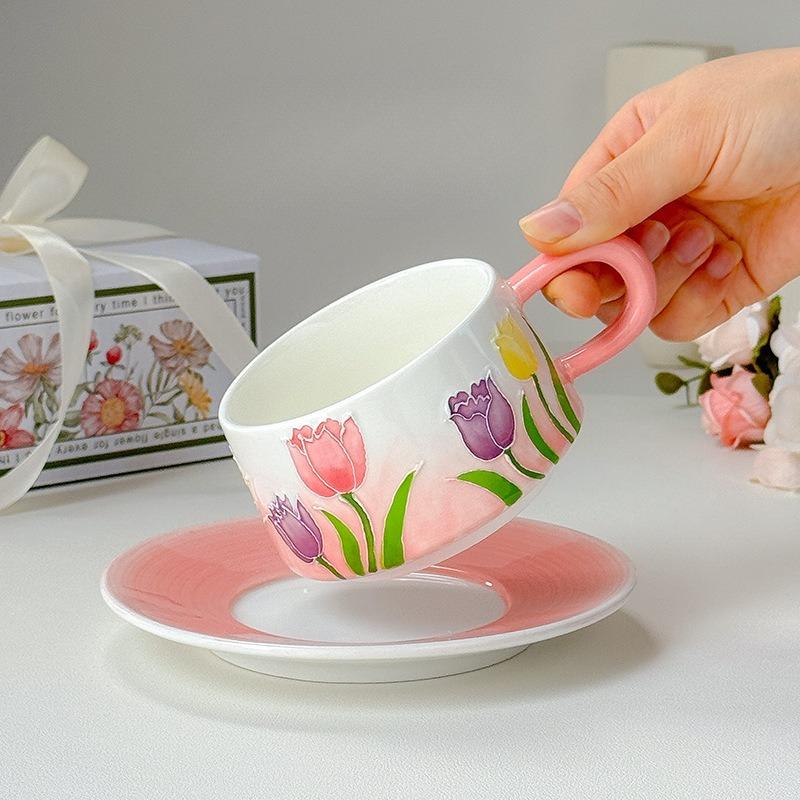 Yimei Ретро Розовая Кружка Ручной Росписи Тюльпан Керамическая Чашка для Послеобеденного Чая Кофе Уровень Внешнего Вида Нишевый Оригинальный Подарок